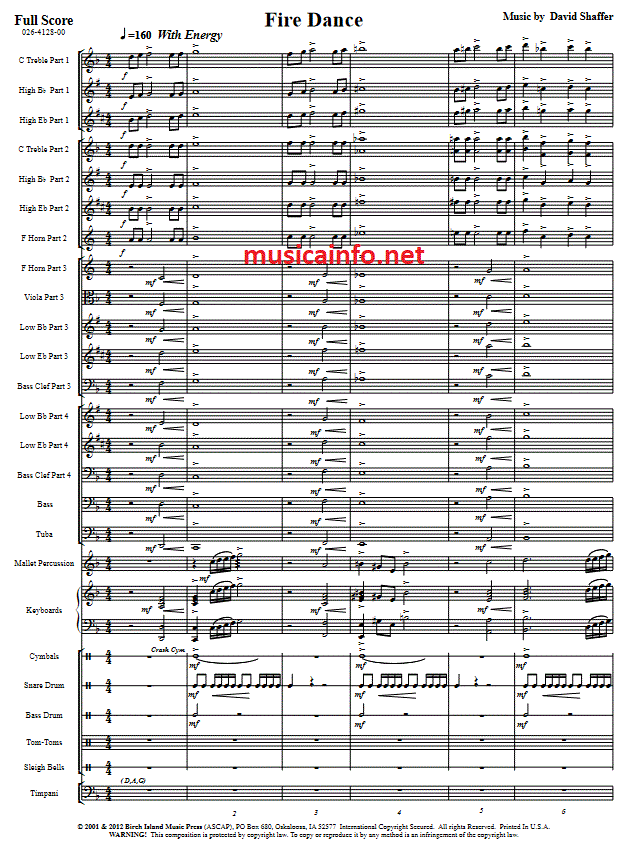 Fire Dance - hier klicken Fire Dance (Blasorchester; variable Besetzung), Partitur und Stimmen