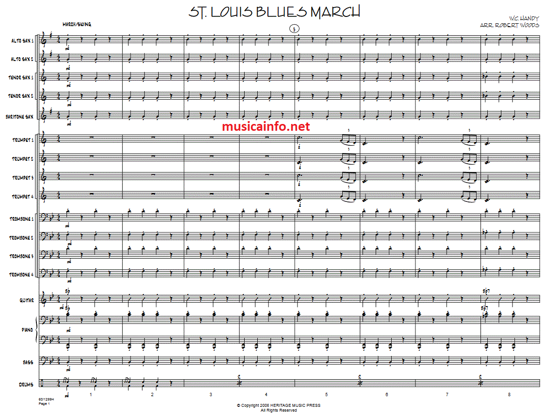 Zusatzinfo/Inhalt W.C. Handy was a jazz composer of great historical significance. He was the first person to transcribe blues tunes of the early 1900s and was later given the title 'Father of the Blues.' 'St. Louis Blues' is his most famous composition, and just as famous was Glenn Miller's arrangement of the piece. The mixture of a military drum cadence with a big band captured the attention of the nation during World War II. This version recreates the Miller arrangement, but has been carefully scored to be playable by bands with limited experience.