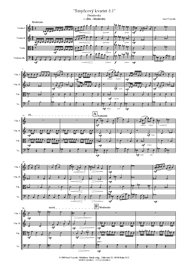 Smyccový kvartet: 1.veta Moderato - Notenbeispiel