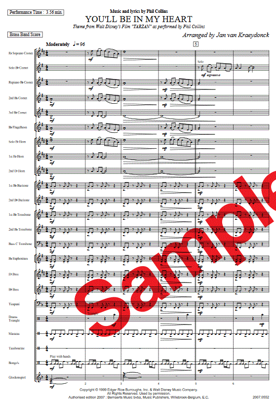 You'll Be In My Heart (from 'Tarzan') - hier klicken You'll Be In My Heart (from 'Tarzan') (Brassband), Partitur und Stimmen
