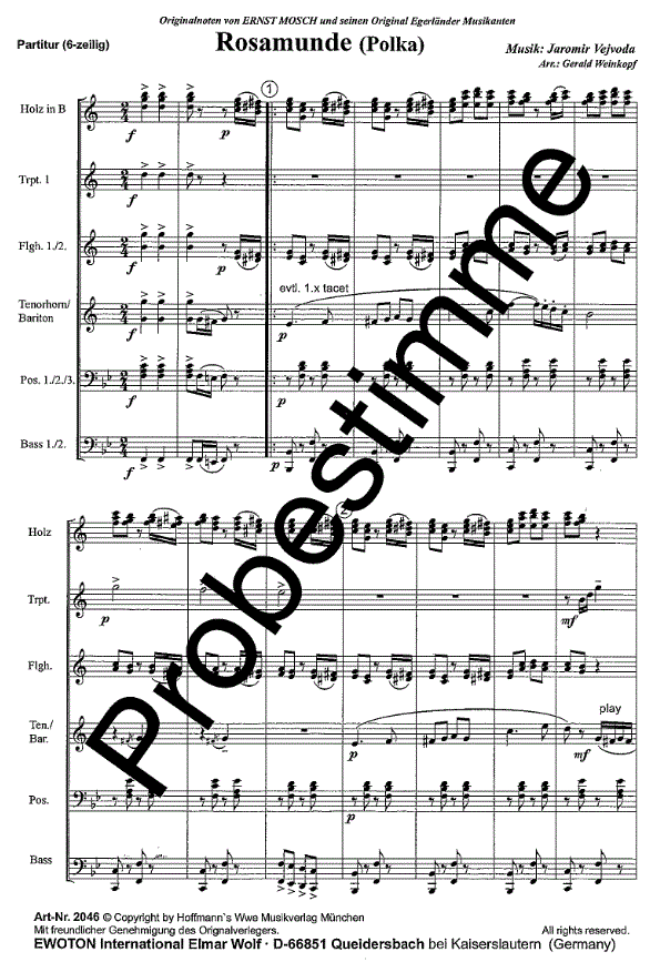 Rosamunde - hier klicken Rosamunde (Blasorchester), Direktionsstimme und Stimmen